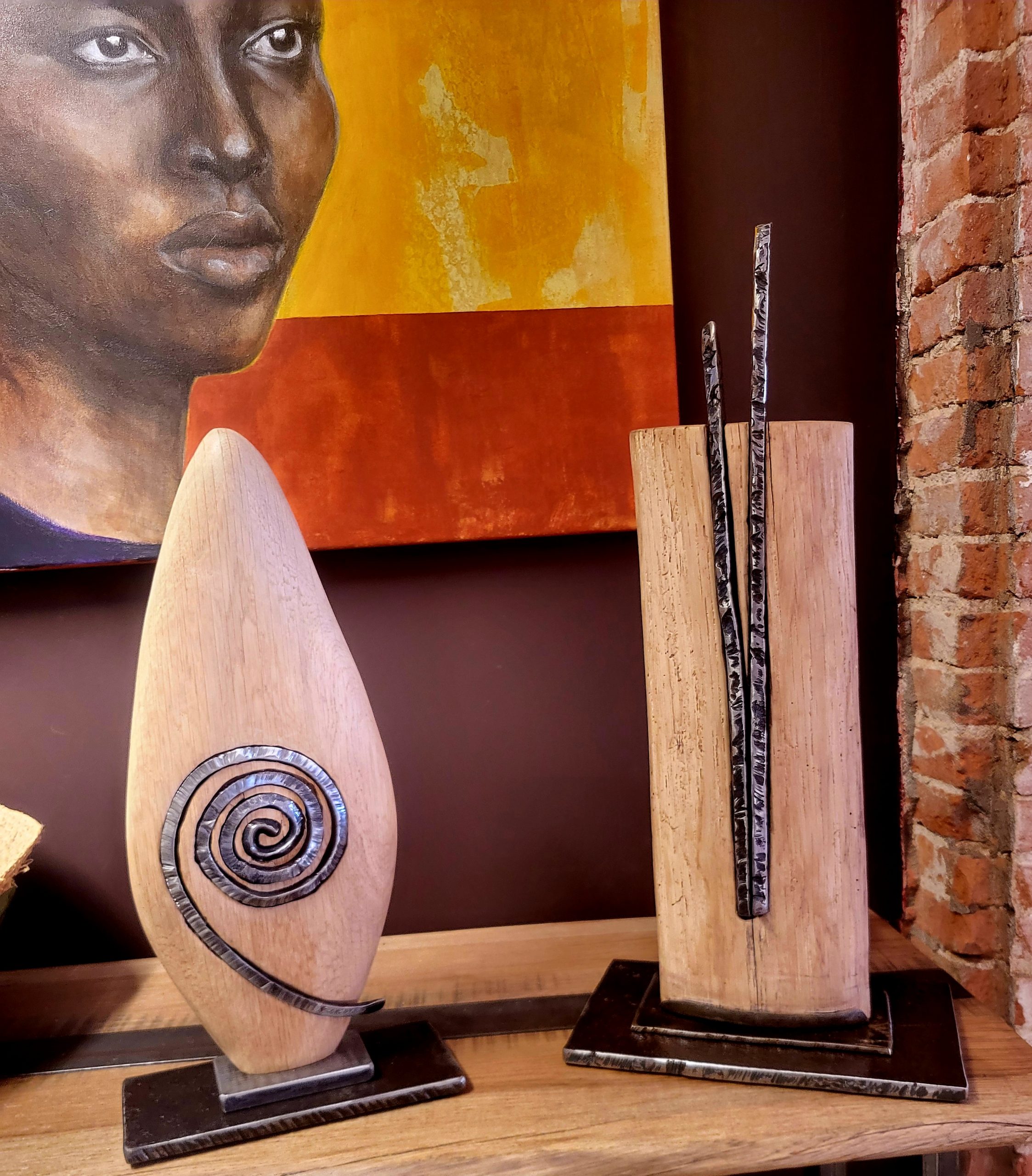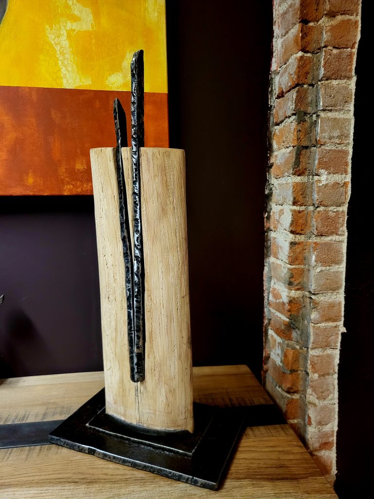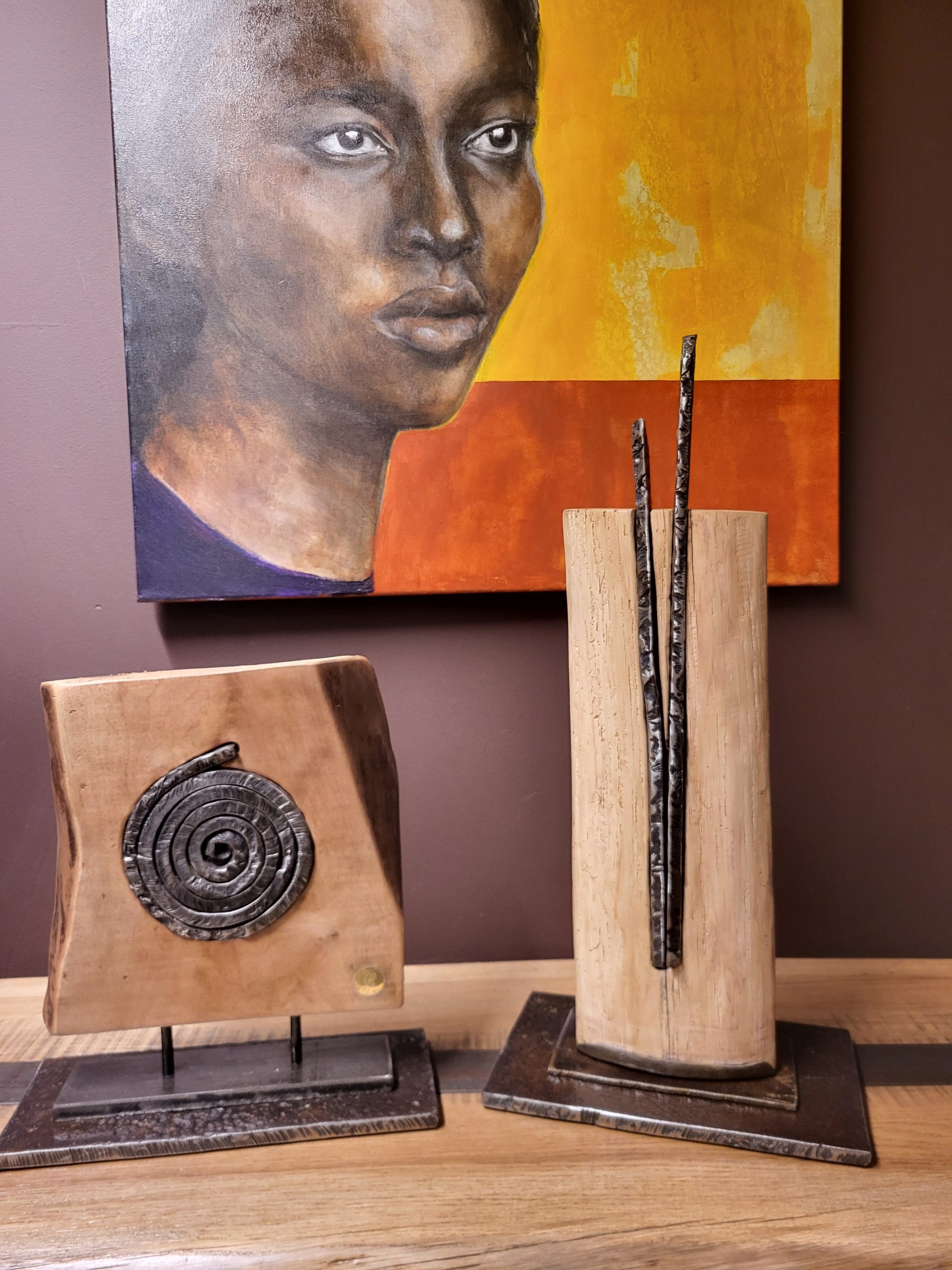 Le bois révèle la lumière du fer.